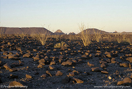 The Indian Pass site with its chips of black volcanic basalt and white quartz has been described as a giant prehistoric chessboard. The Quechan and other Colorado River tribes have continuously used and revered this site for thousands of years for spiritual teaching and religious pilgrimages. The land is now owned by the federal government and managed by the Bureau of Land Management.